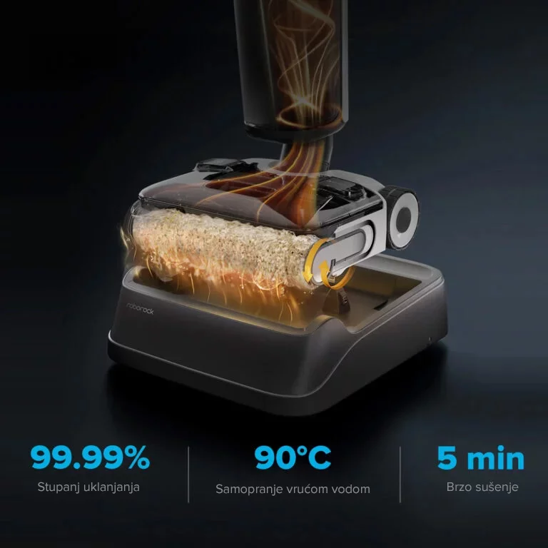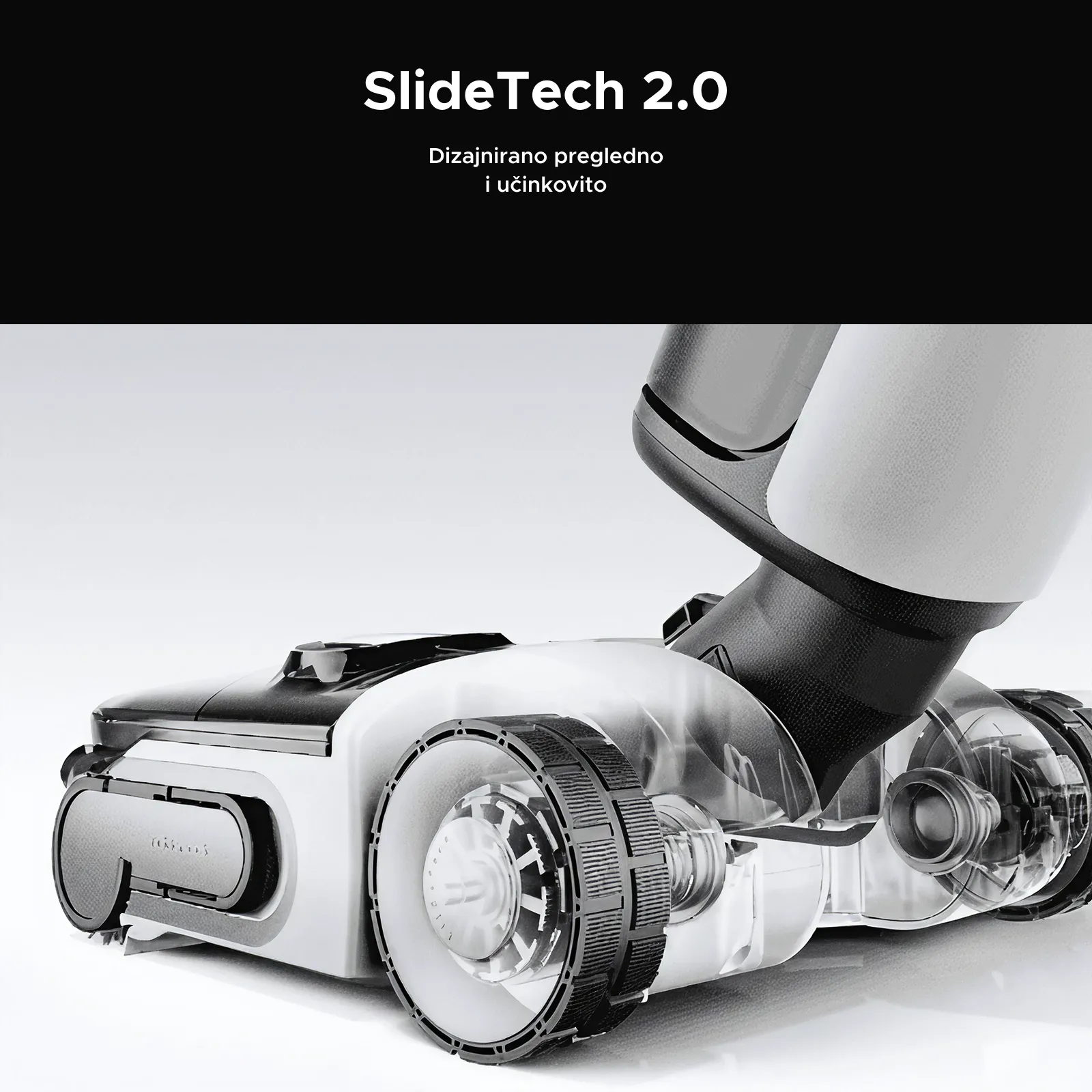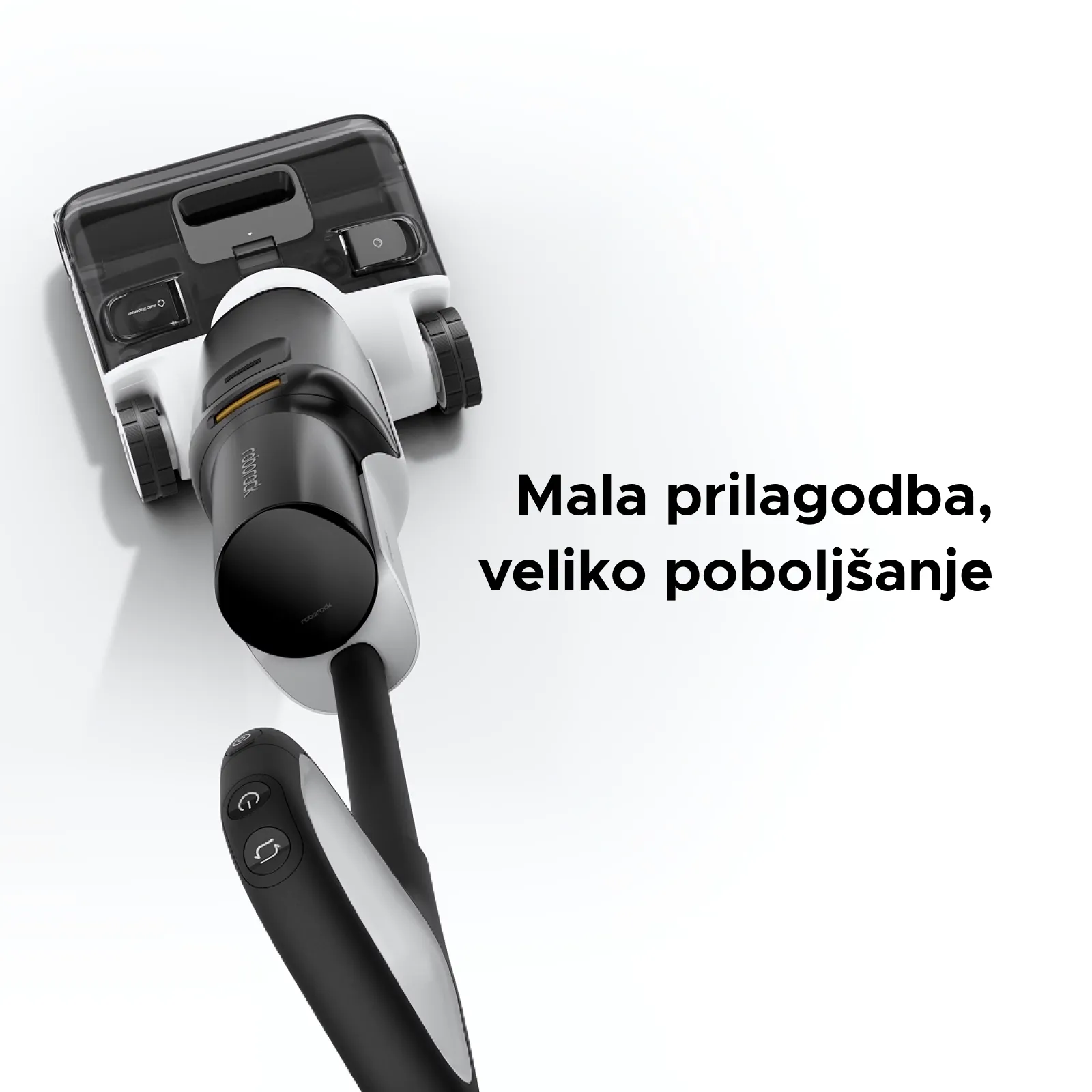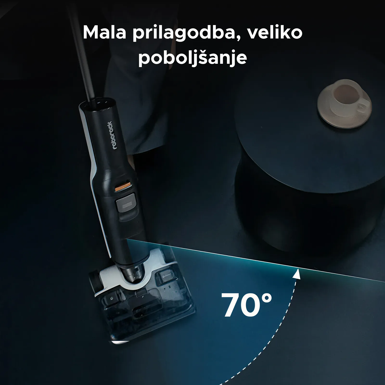 Unaprijeđen niskim rezervoarom za vodu i dizajnom rotacije od 70°, omogućava lako kretanje oko namještaja i prepreka, obezbjeđujući glatko i efikasnije čišćenje.