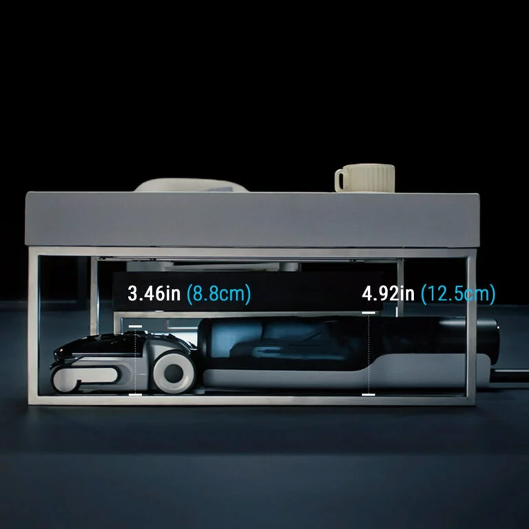 Snažno usisavanje i u uskim prostorima zahvaljujući tankom dizajnu od 12,5 cm, koji zadržava punu usisnu snagu pri položaju od 0°. Ultra-nizak profil omogućava dosezanje svakog ugla bez ostavljanja prašine iza sebe.