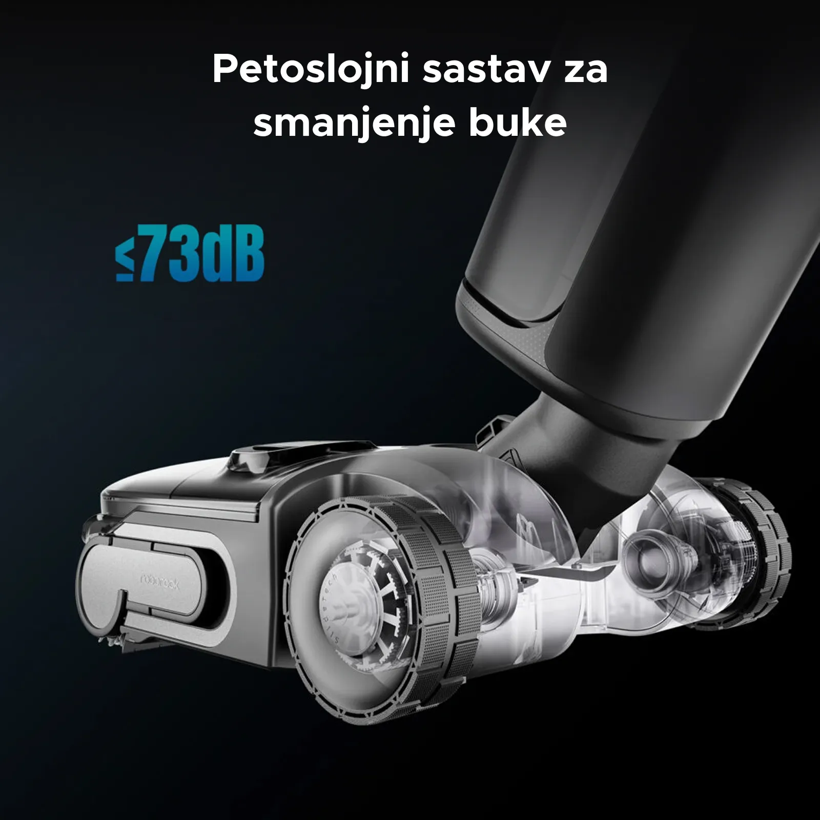 Zahvaljujući niskom težištu i dizajnu rotacije od 70°, uređaj se lako kreće oko namještaja i prepreka, obezbjeđujući glatko i efikasnije čišćenje.