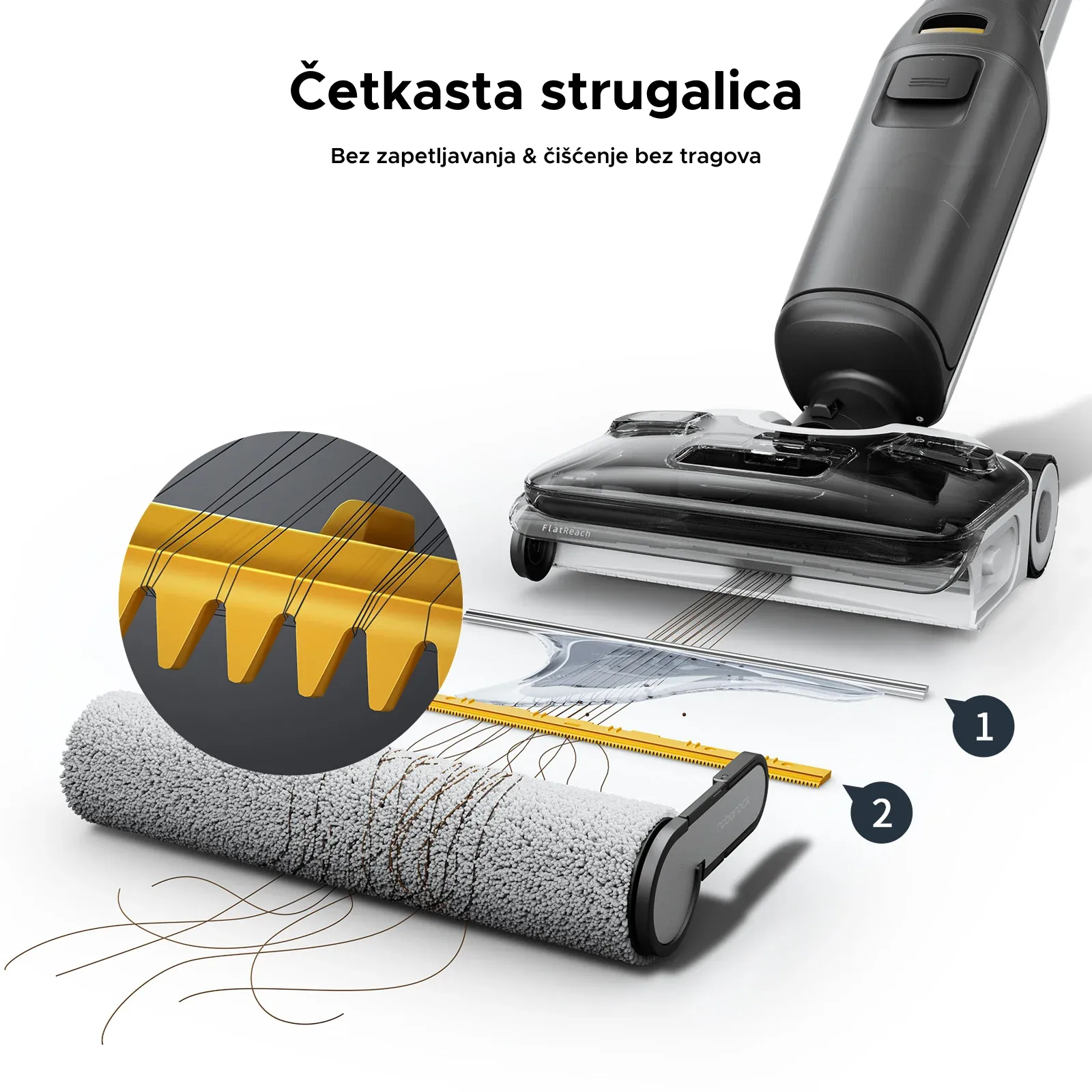Zahvaljujući jedinstvenom dizajnu četke, nema zapetljavanja kose.