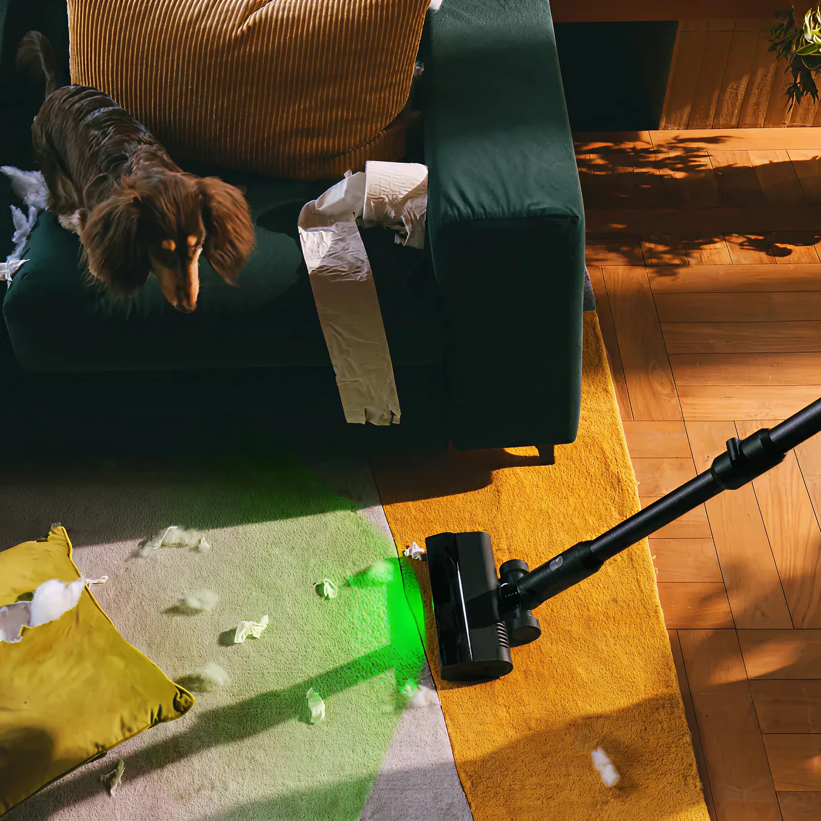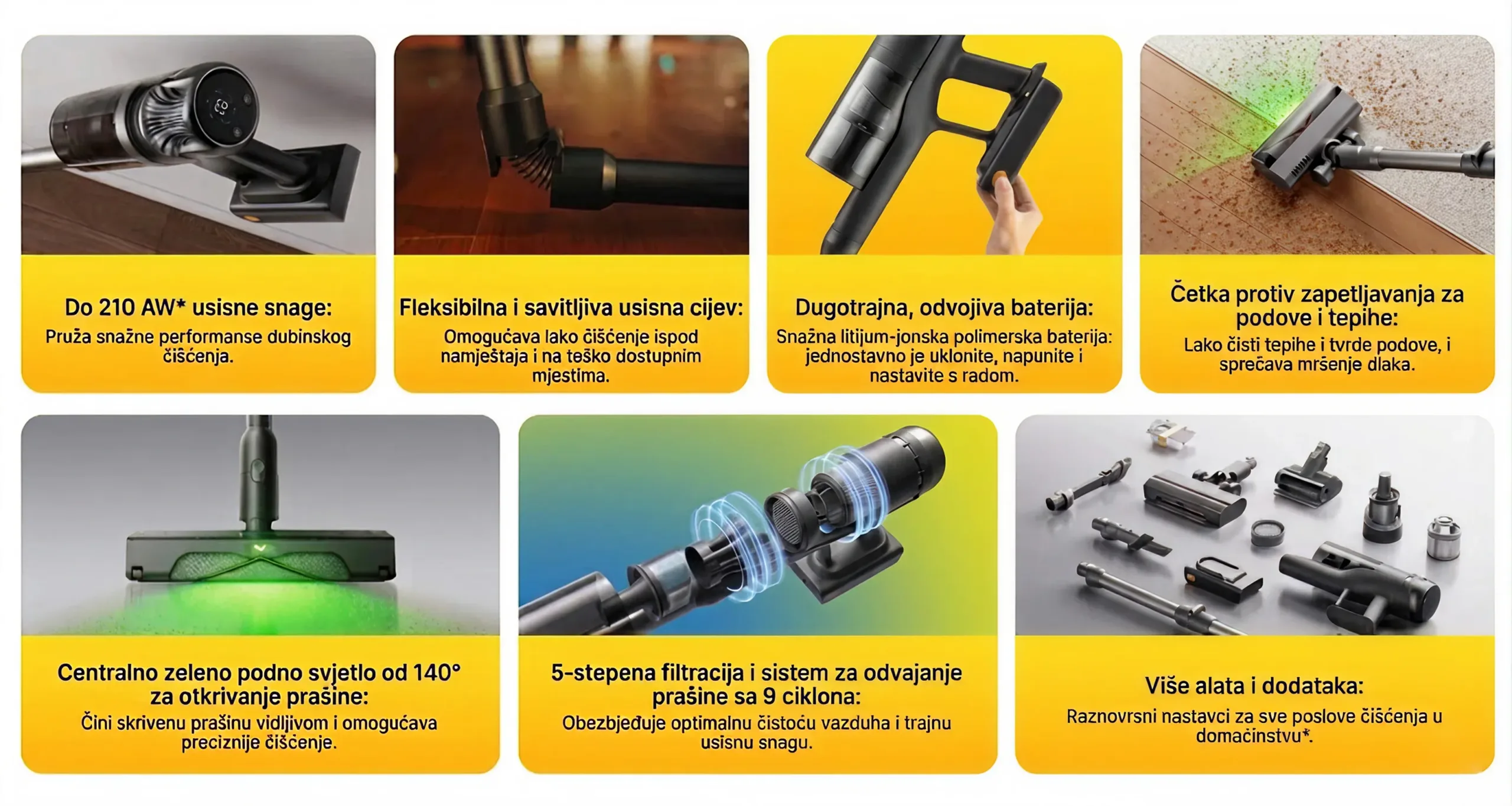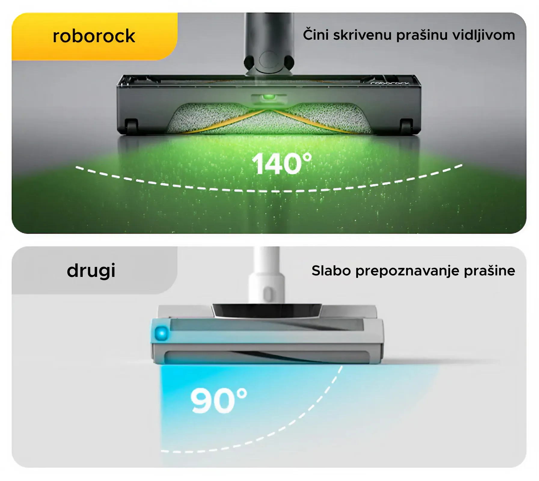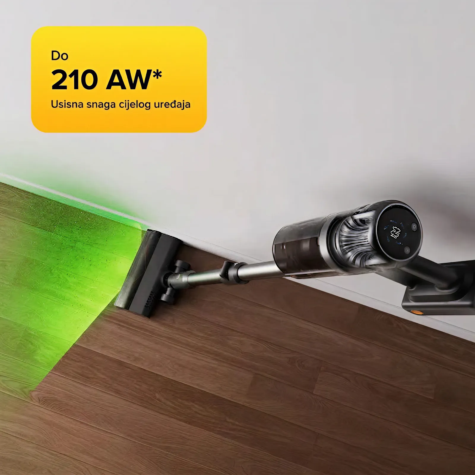 Specijalno dizajnirano zeleno svjetlo otkriva skrivenu prašinu i fine čestice, omogućavajući temeljitije i lakše čišćenje.