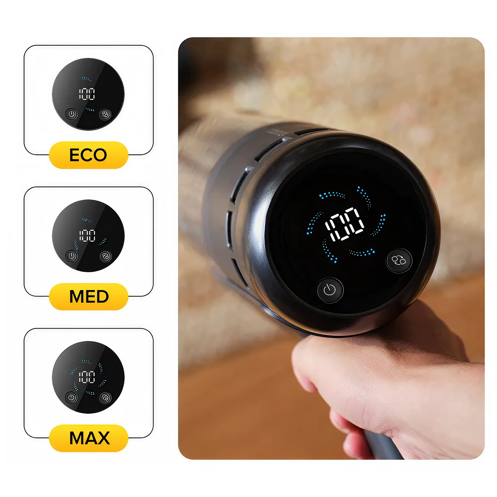 Prikazuje režim rada i trajanje baterije u realnom vremenu, a može se jednostavno ukloniti radi punjenja.