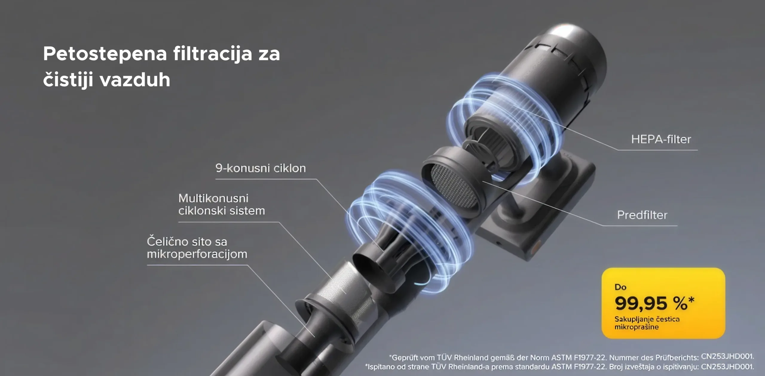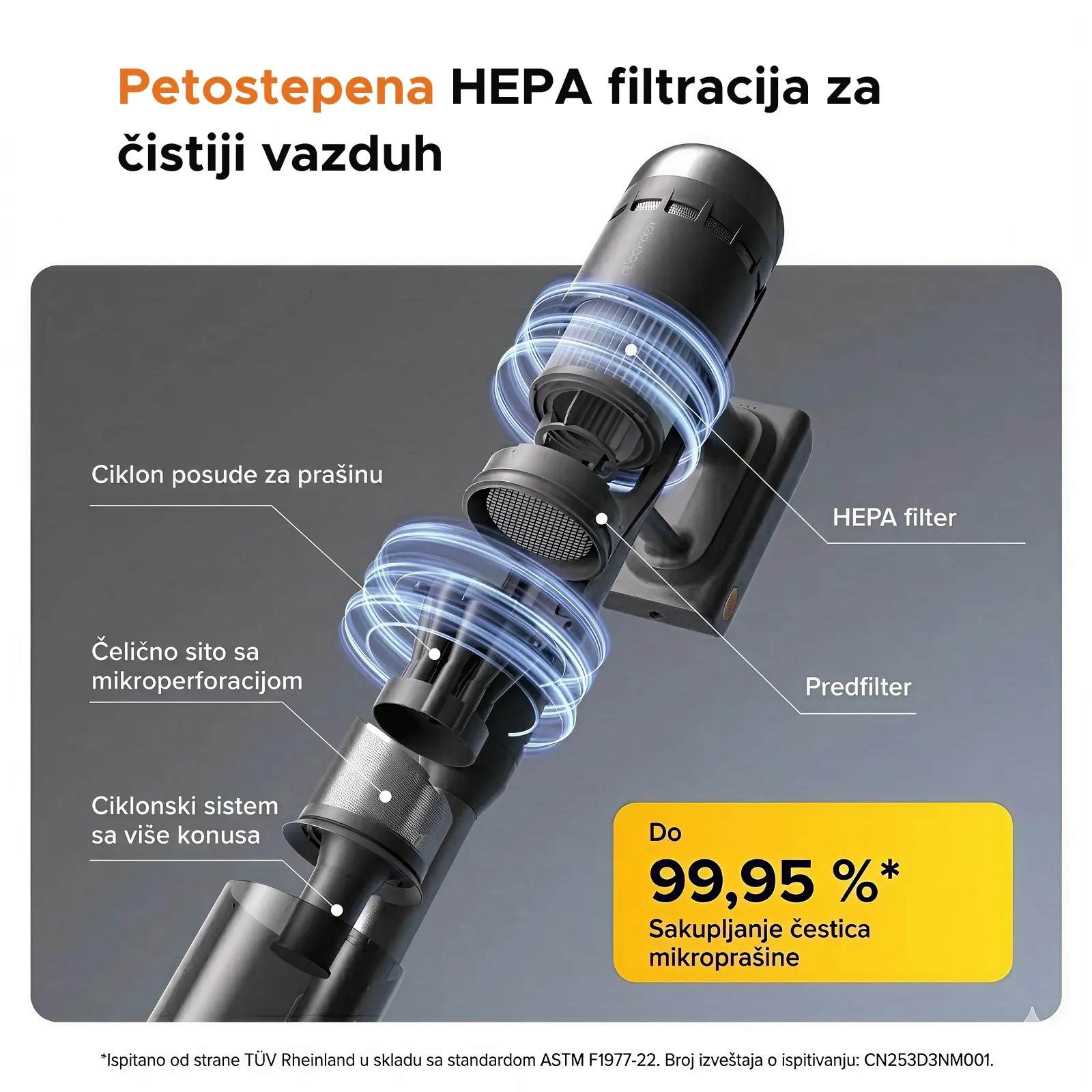 99,95% filtracije kroz 5-stepeni HEPA sistem