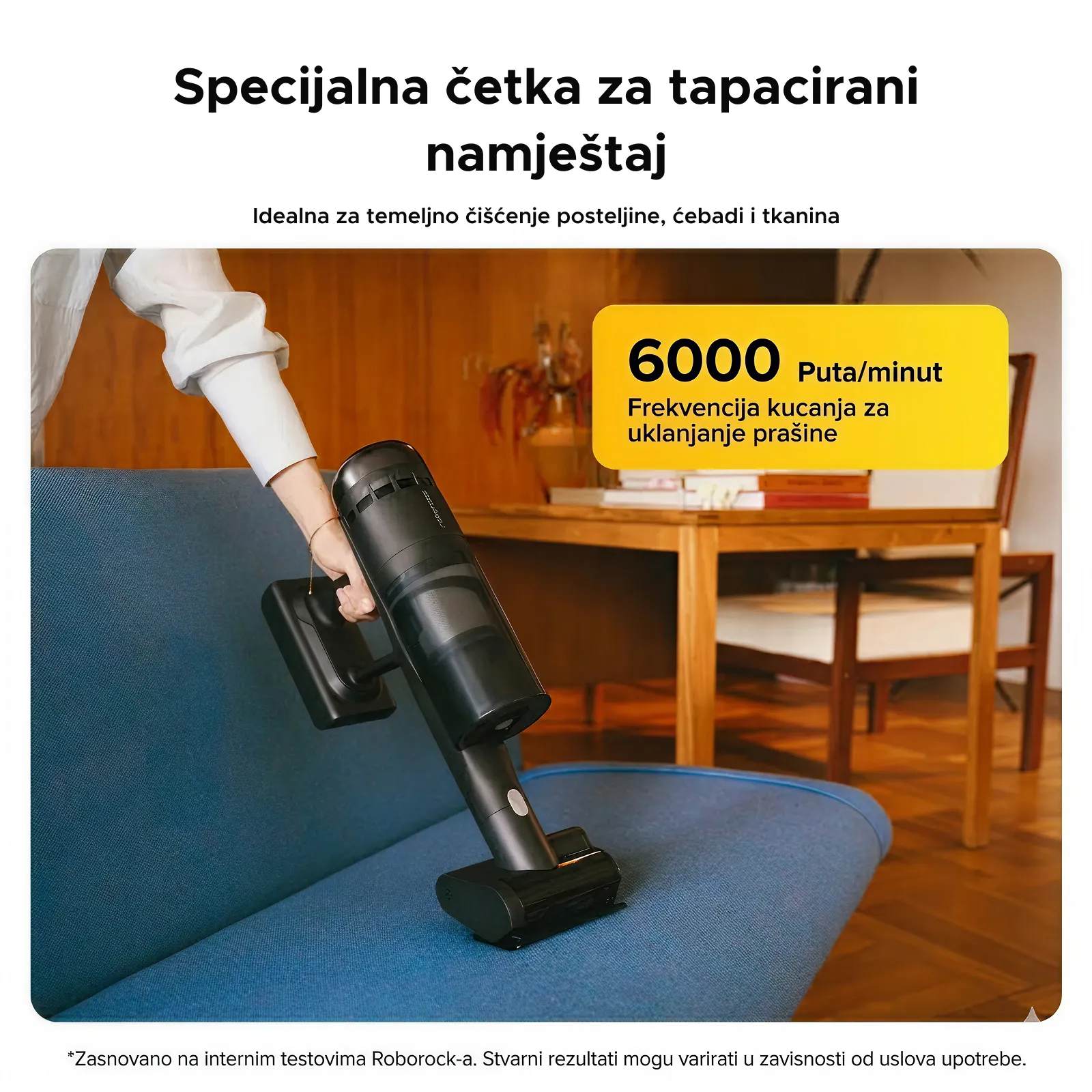 Efikasno uklanja prašinu i dlake sa sofa, kreveta i tkanina bez zapetljavanja.