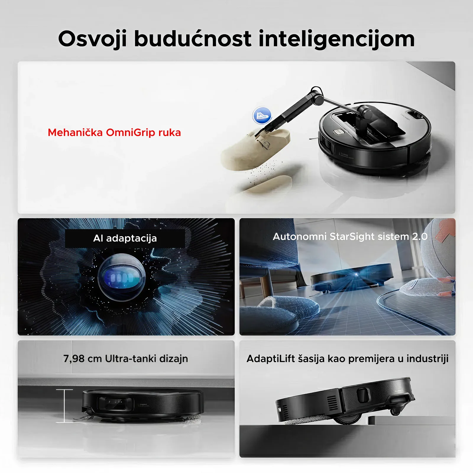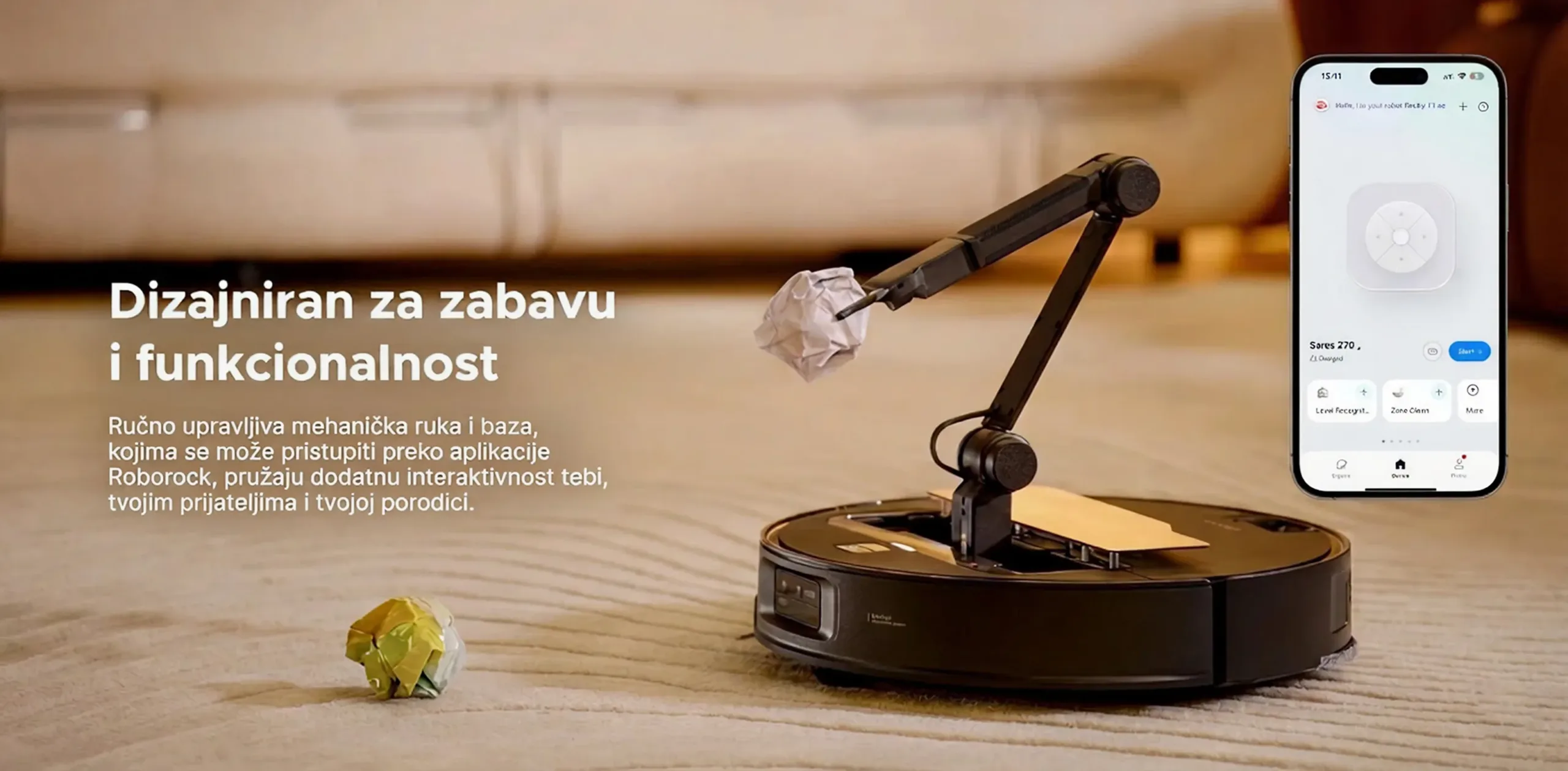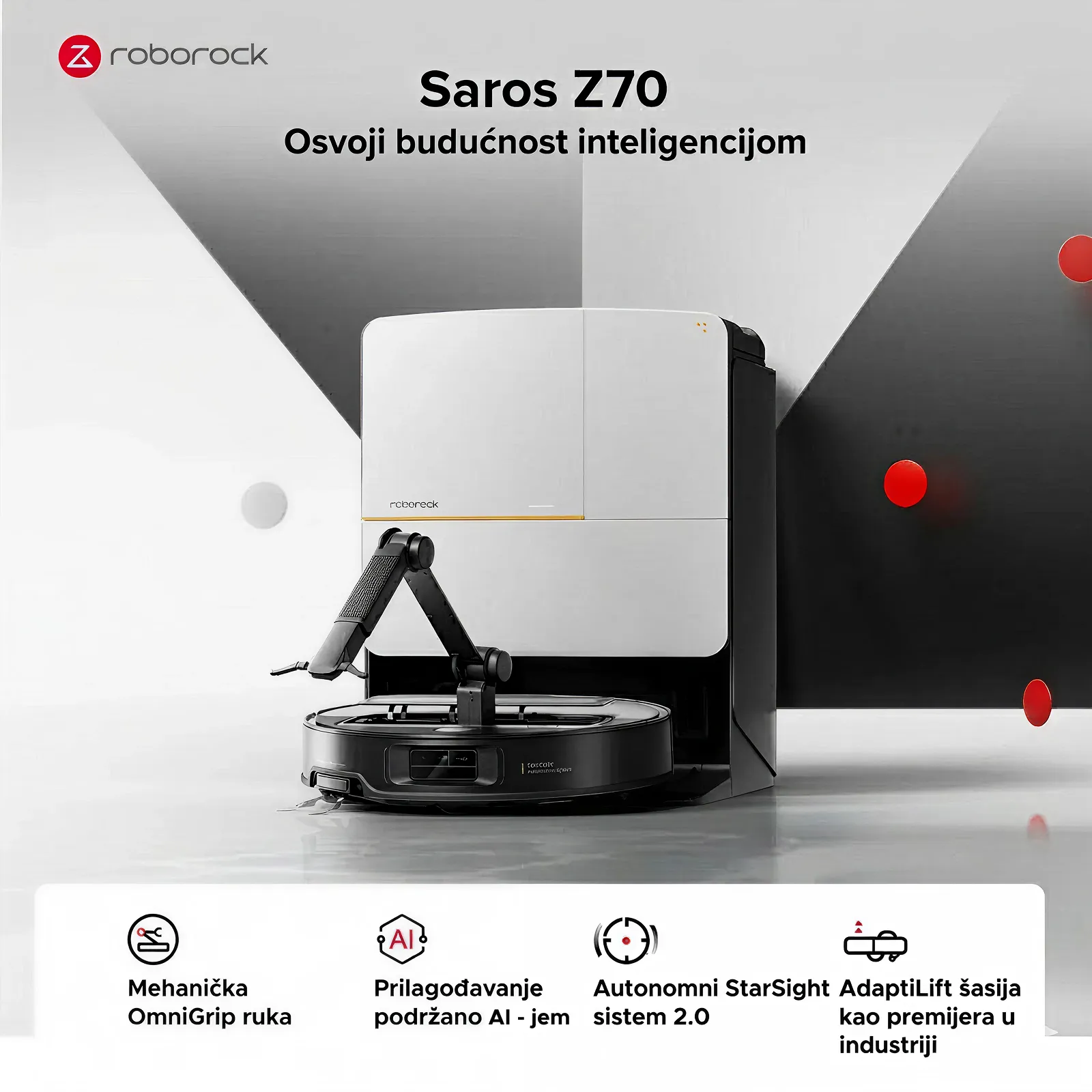 Predstavljamo Saros Z70 – prvi robotski usisivač u serijskoj proizvodnji sa sklopivom petoosnom mehaničkom rukom za još temeljitije čišćenje. Inovativna ruka omogućava robotu da uklanja prepreke sa puta i čisti prethodno nedostupna mjesta – sve to uz zadržavanje naprednih Roborock funkcija u izuzetno tankom kućištu, visokom svega 7,98 cm.